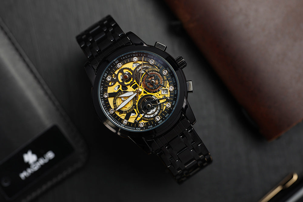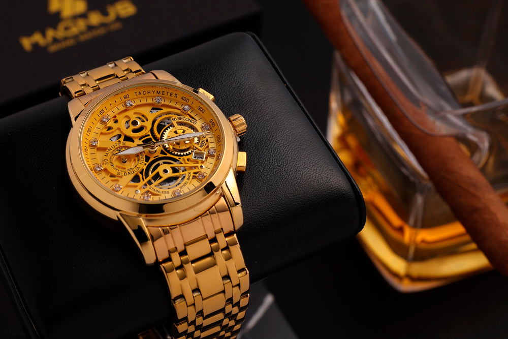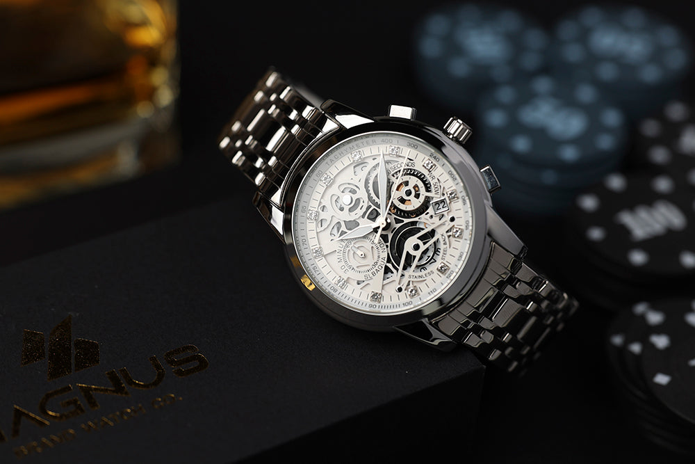 Sammenlignet med andre lignende designede ure, har Magnus-varemærket ægte 3D-modellering under safirglasset, i modsætning til papir-ure, der findes andre steder.